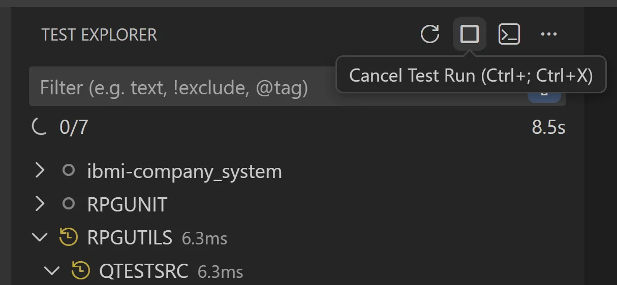 @IBMi:local: Show only tests from local files.@IBMi:qsys: Show only tests from source members.