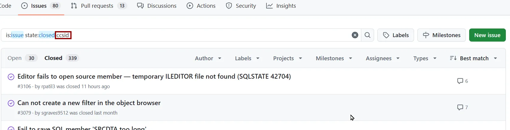 You can also search issues by adding text in the search bar: