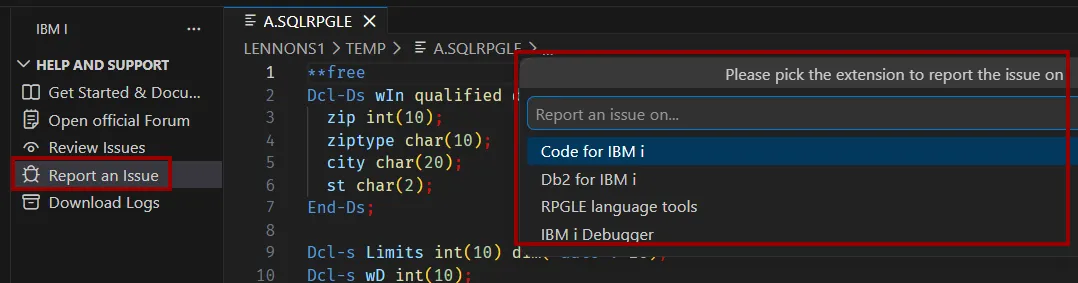 Often the support team will ask for the full Code for IBM i log to better understand what’s happened. For this you can use Download Logs.